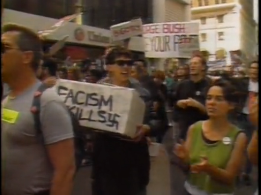 On January 22, 1991, ACT UP staged the Day of Desperation, a series of protests that aimed to bring attention to the desperation of people with AIDS. ACT UP members argued that media attention about the Gulf War, which began on January 16, 1991, was “accompanied by manufactured anti-Arab sentiment and generalized fear” and was “a monumental distraction from the real problems of the AIDS crisis, a huge waste of money, and an exploitative use of racism to justify a war."86 As part of the Day of Desperation, several groups of ACT UPers successfully disrupted two news programs: the CBS Evening News and The MacNeil/Lehrer NewsHour. On CBS, a protestor was shown chanting “Fight AIDS, not Arabs” before the network cut to a commercial.
