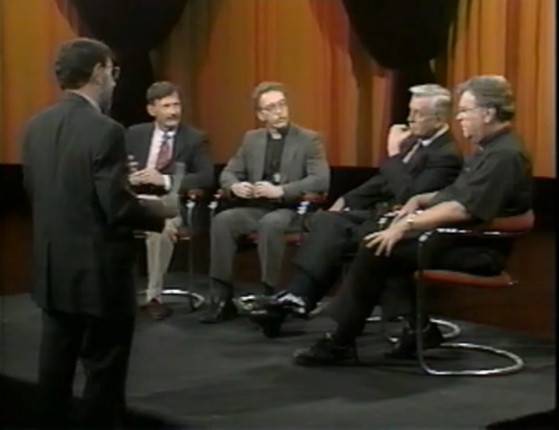 This panel was followed by a press conference that earlier had been given by William Kobin on KCET’s decision to broadcast the program, then another panel discussion with Tracy Westen, Professor of Media Law at the University of Southern California Annenberg School of Communications, and Van Gordon Sauter, former president of CBS News. Sauter called the documentary a “tantrum” and a “dreary film.” Westen, on the other hand, argued, “It is a legitimate, important point of view that needs articulation.”