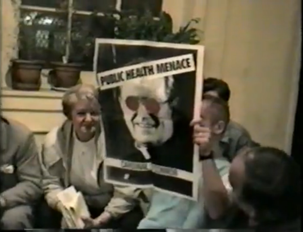 On October 11, 1988, ACT UP organized a demonstration at the FDA to demand the speedy approval of more HIV/AIDS treatments. Seize Control of the FDA was ACT UP’s first major protest, with 1,500 activists in attendance. Footage from Seize Control of the FDA was included in the first installment of The AIDS Quarterly, which is available for viewing at the Library of Congress and GBH. This protest successfully led to the development of accelerated drug approval processes and new treatment regulations by the FDA, described by FDA Commissioner Dr. Frank Young in a NewsHour interview. In a retrospective essay on the action, activist Douglas Crimp wrote,